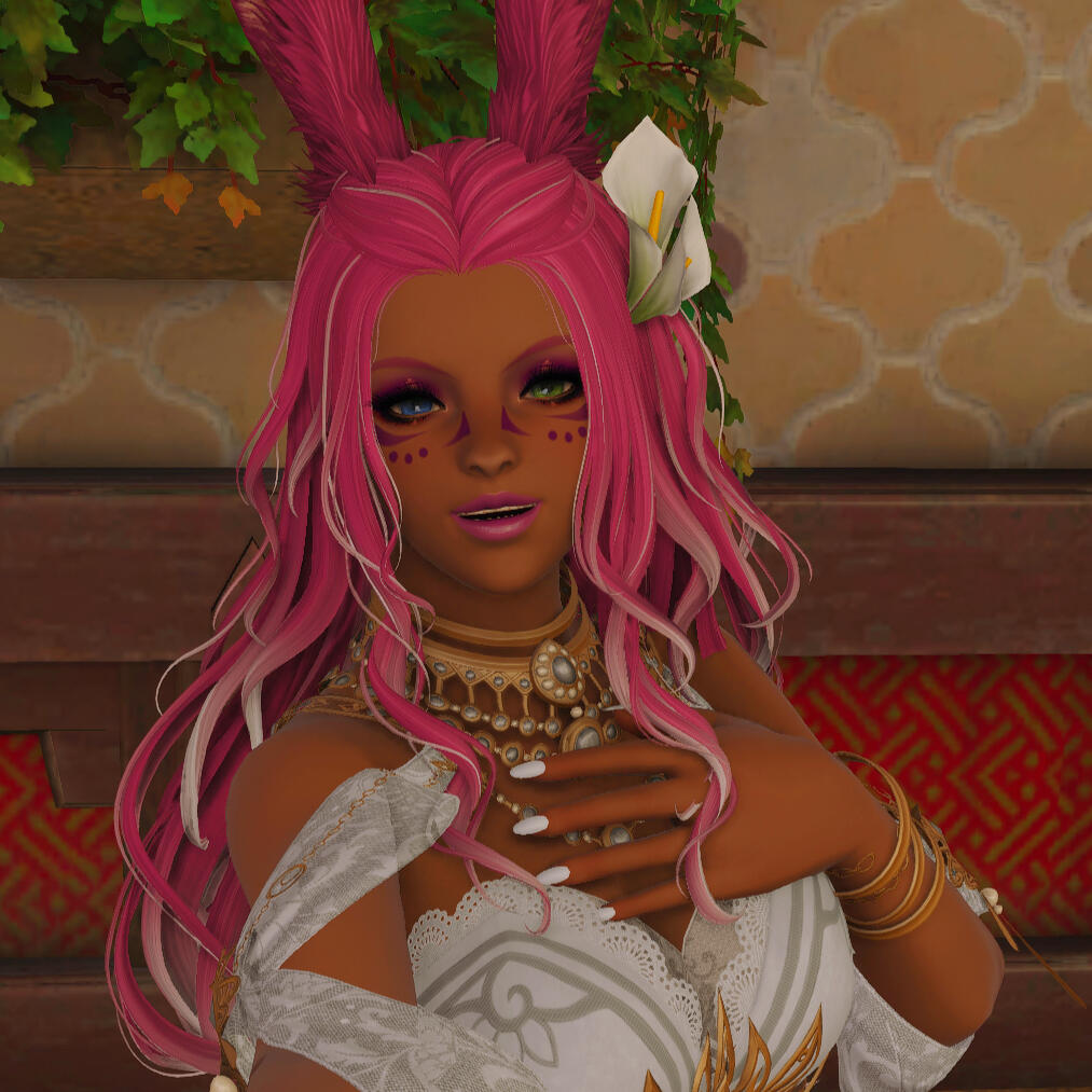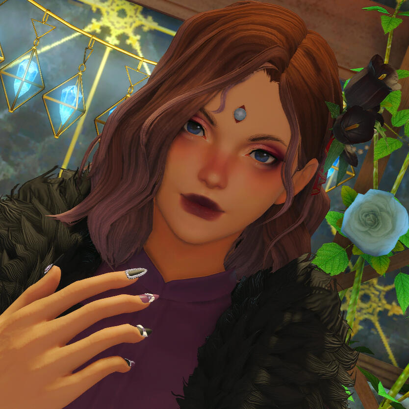 Race: Faerie who typically presents as a Keeper of the Moon Miqo'te and finds that to be her 'truest' form whether it really is or not. She is a shape shifter, so sometimes can be seen as other races, but it's not too often an occurrence these days since she's gotten better control over those powers.