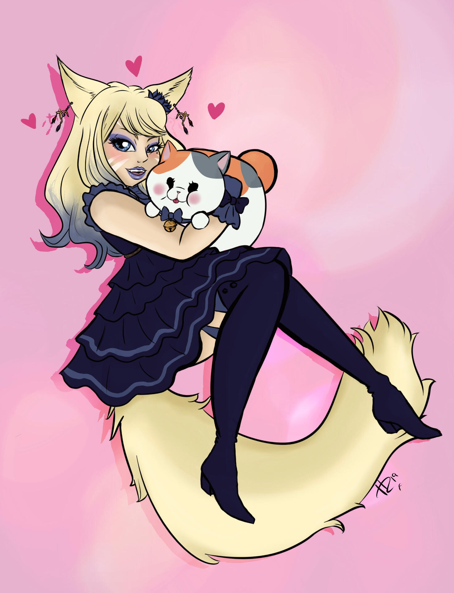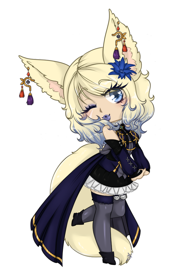 Height and Build: Fluctuates between 4'5"-4'7" regardless of what race/gender she's presenting as, petite and light to the point of barely weighing anything at all (her fluff almost weighs more then her)