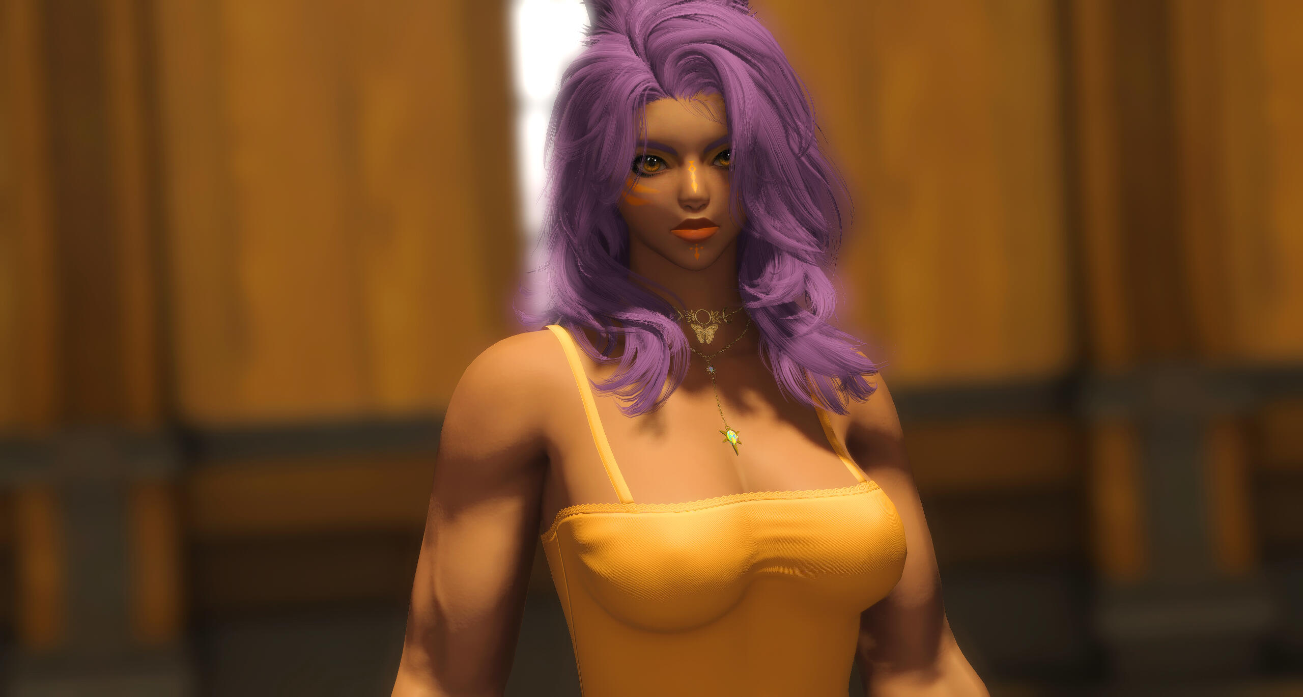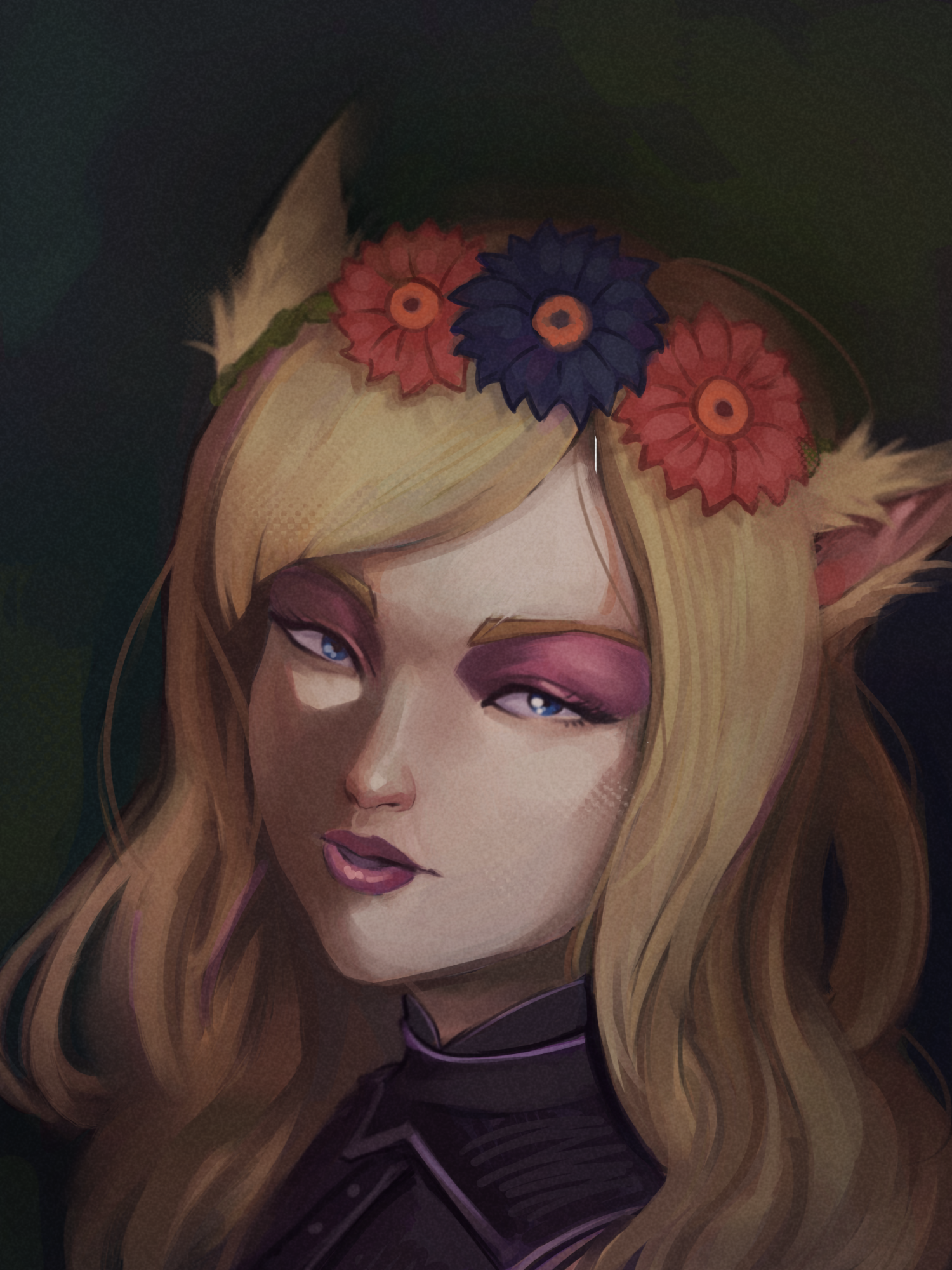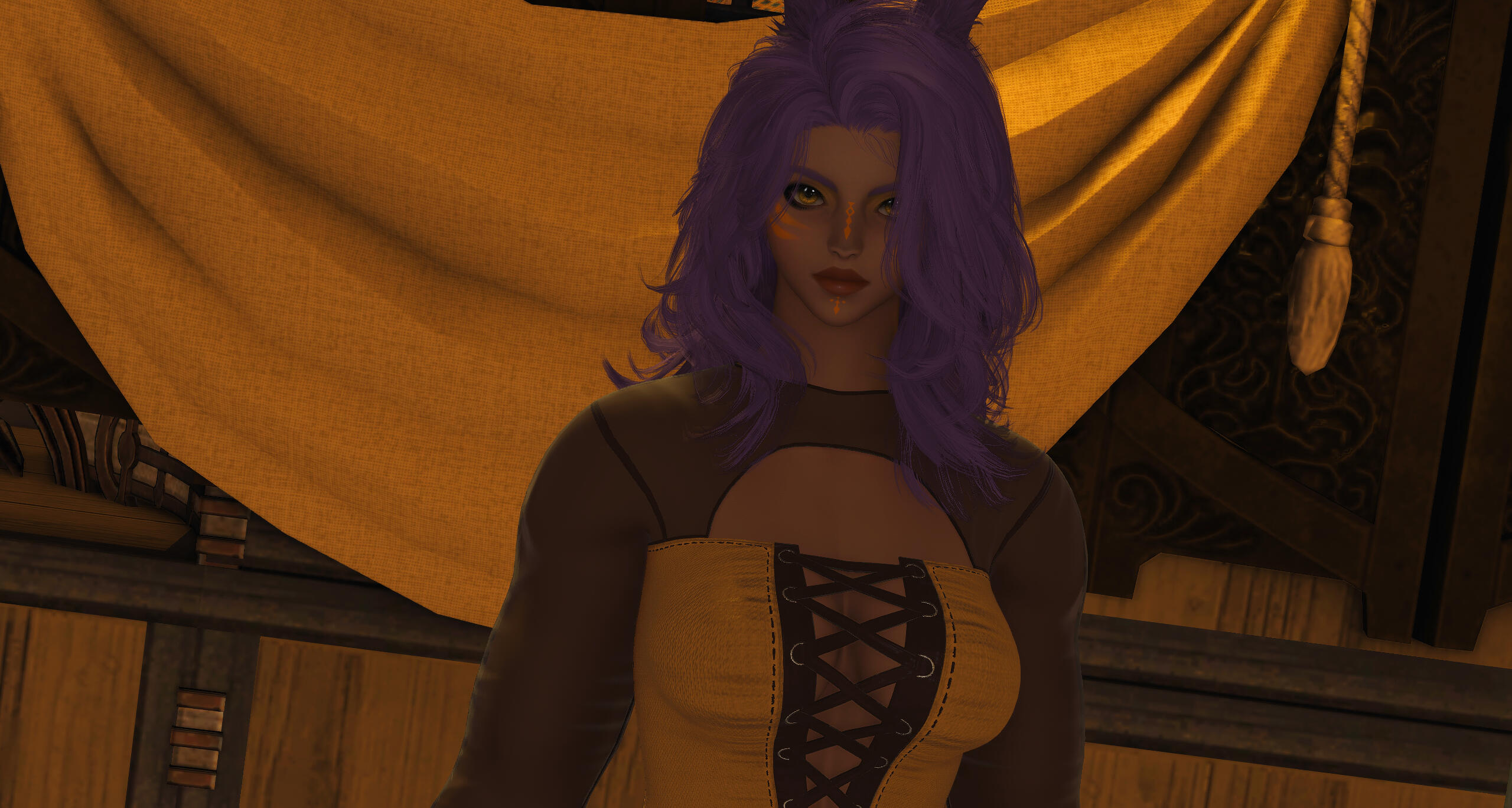 Race: Faerie who typically presents as a Keeper of the Moon Miqo'te and finds that to be her 'truest' form whether it really is or not. She is a shape shifter, so sometimes can be seen as other races, but it's not too often an occurrence these days since she's gotten better control over those powers.